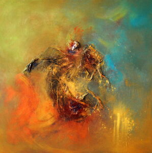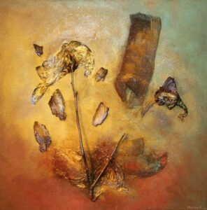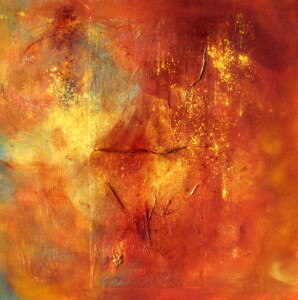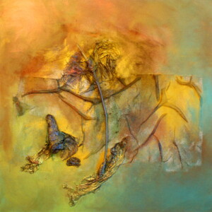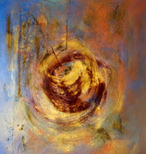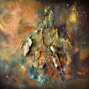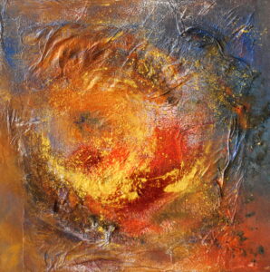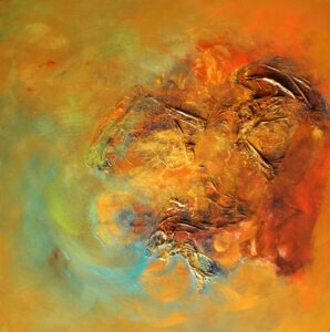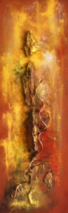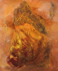 Mon exercice vers le travail de la matière, en technique mixte, facilite l’approche et l’intégration dans le corps, dans notre propre matière pour faire jaillir ensuite la matière sur la toile.